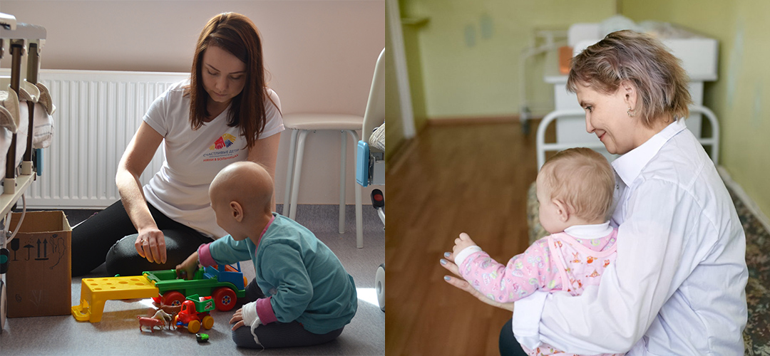 Nannies take care of orphans and children from 0 to 4 years old without parents’ guardianship who are admitted to hospitals in the city of Krasnoyarsk. Nannies collaborate with medical staff, take children to treatments, clean hospital wards, record children’s developmental progress. These nannies regularly attend educational workshops to develop their skills and of course they love children.